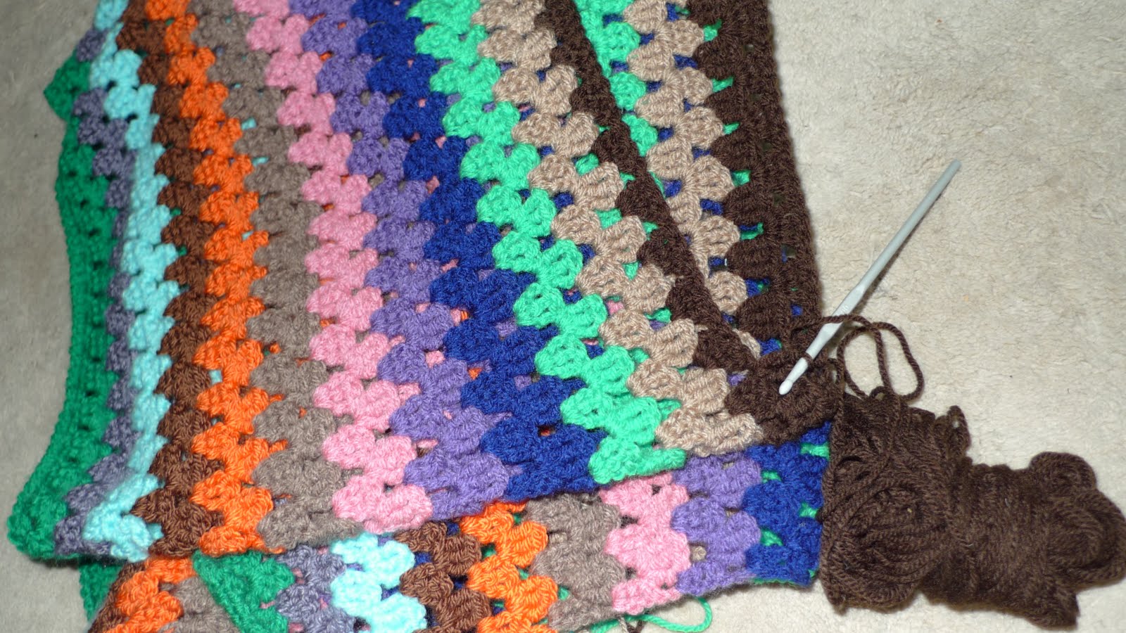 The granny stripe can only be done in the absence of my FIL, so it is coming along, but a little slowly.